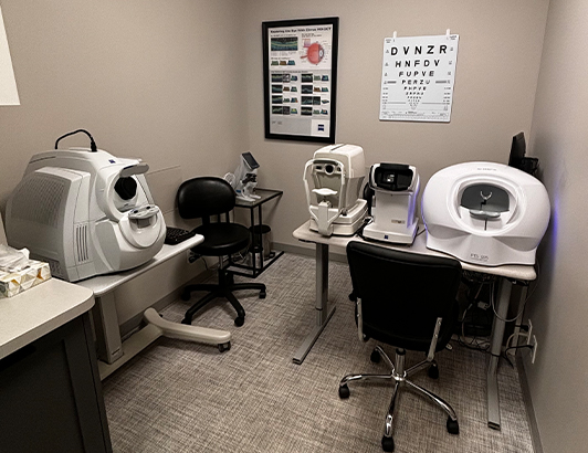 - Virtual reality visual field testing (VR VF): A modern, headset-based approach to checking your peripheral vision. This technology helps us monitor for changes related to glaucoma, neurological conditions, and other eye diseases that affect your field of vision.
